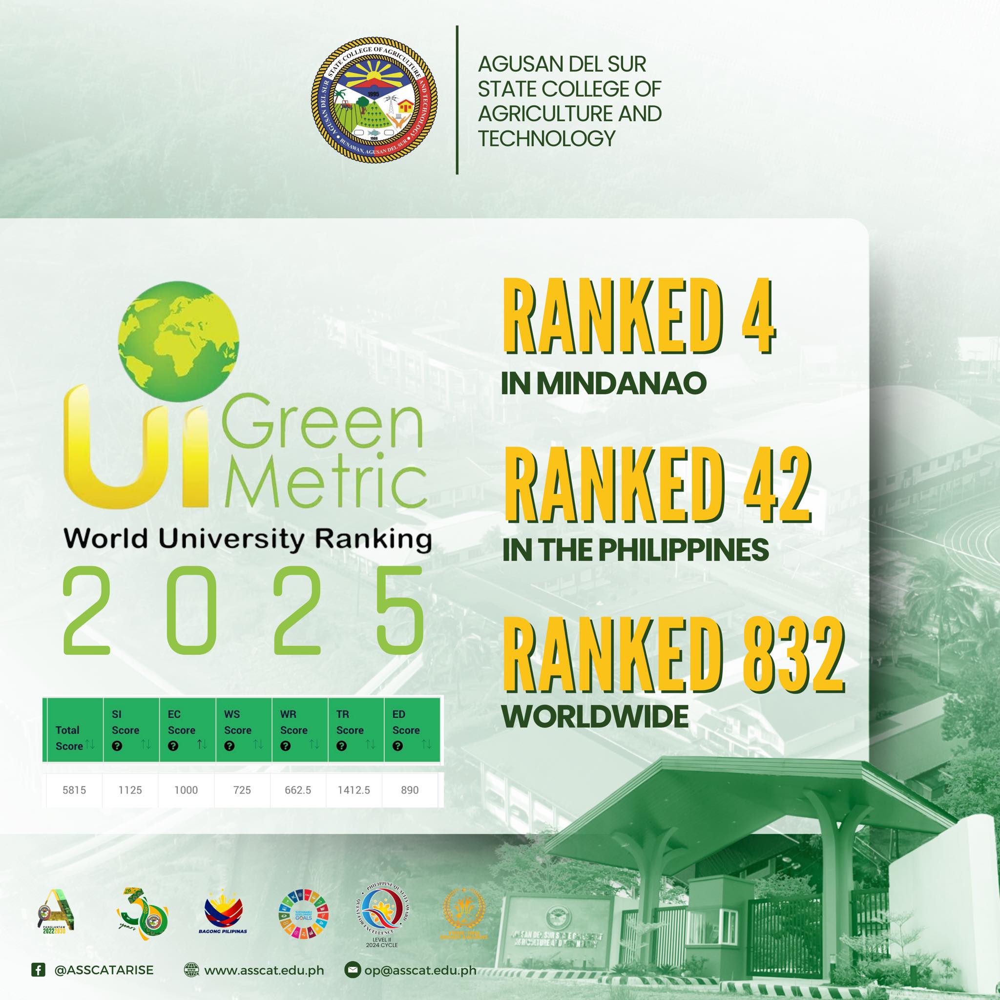 ASSCAT Ranks Among Top Sustainable Universities in UI GreenMetric 2025 Read More … ASSCAT College of Arts and Sciences Collaborates with Agusan Marsh Wildlife Sanctuary for World Migratory Bird Day Celebration October 11, 2024 Serve With Joy February 15, 2024 …