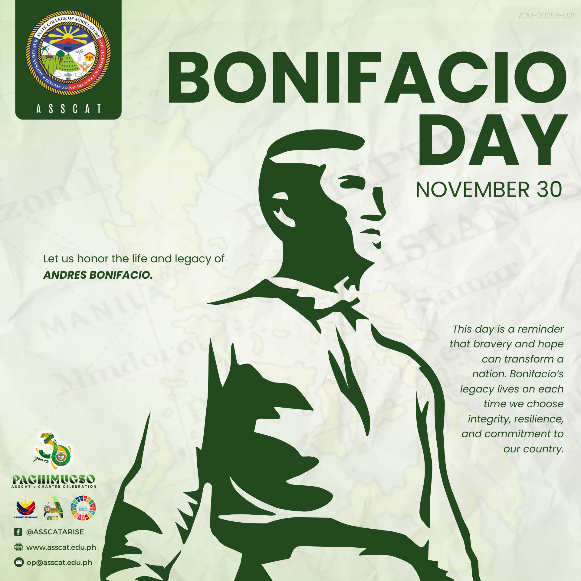 Bonifacio Day Read More … 𝐀𝐒𝐒𝐂𝐀𝐓 𝐃𝐞𝐩𝐚𝐫𝐭𝐦𝐞𝐧𝐭 𝐨𝐟 𝐁𝐢𝐨𝐥𝐨𝐠𝐲 𝐄𝐱𝐜𝐞𝐥𝐬 𝐚𝐭 𝐭𝐡𝐞 𝟖𝐭𝐡 𝐂𝐚𝐫𝐚𝐠𝐚 𝐇𝐞𝐚𝐥𝐭𝐡 𝐂𝐨𝐧𝐟𝐞𝐫𝐞𝐧𝐜𝐞 November 17, 2025 DBM and CHED Conduct Infrastructure Monitoring and Validation at ASSCAT September 24, 2024 Nearly Two Decades of Service: Engr. Lasta Honored …