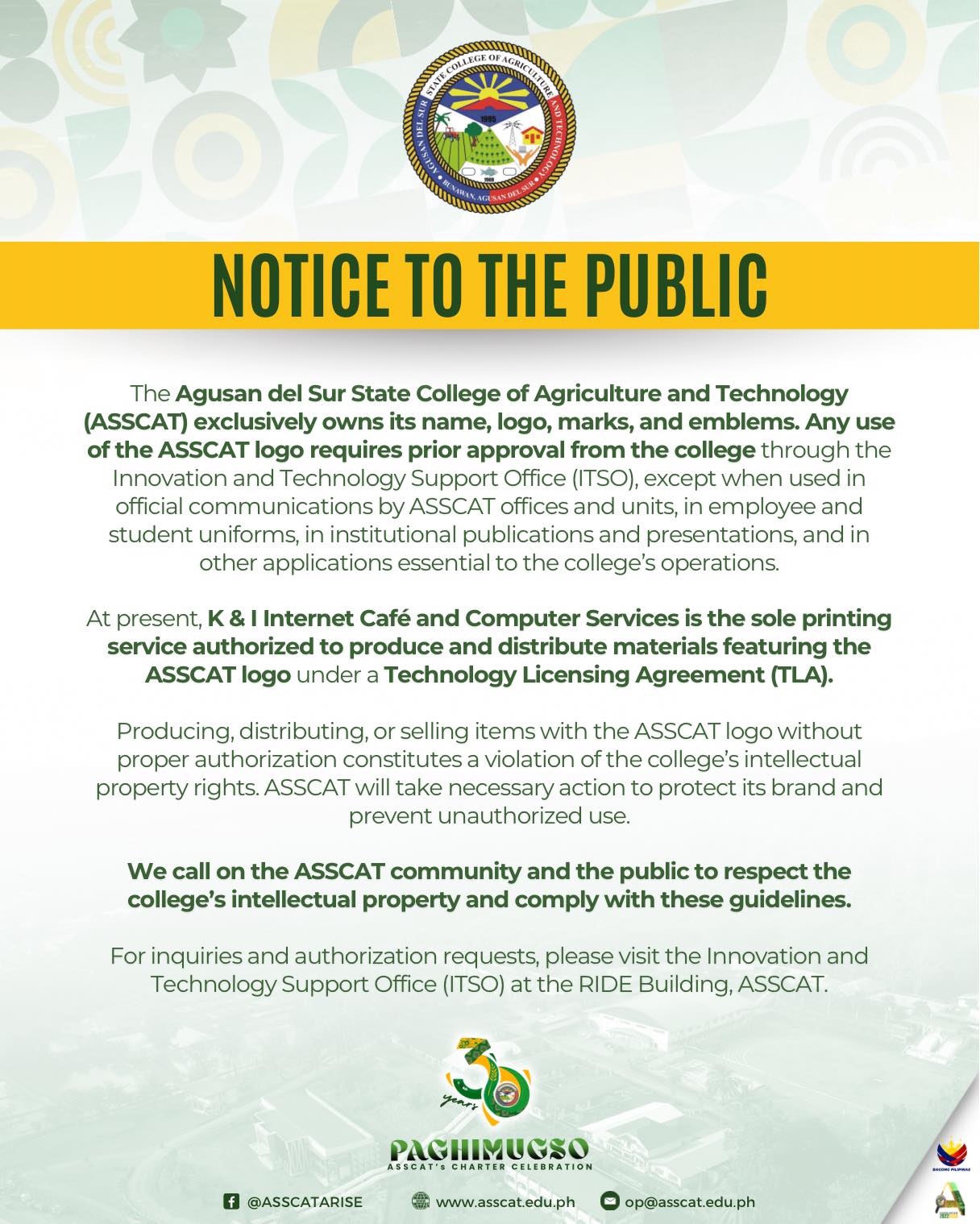 NOTICE TO THE PUBLIC | Use of ASSCAT Name and Seal