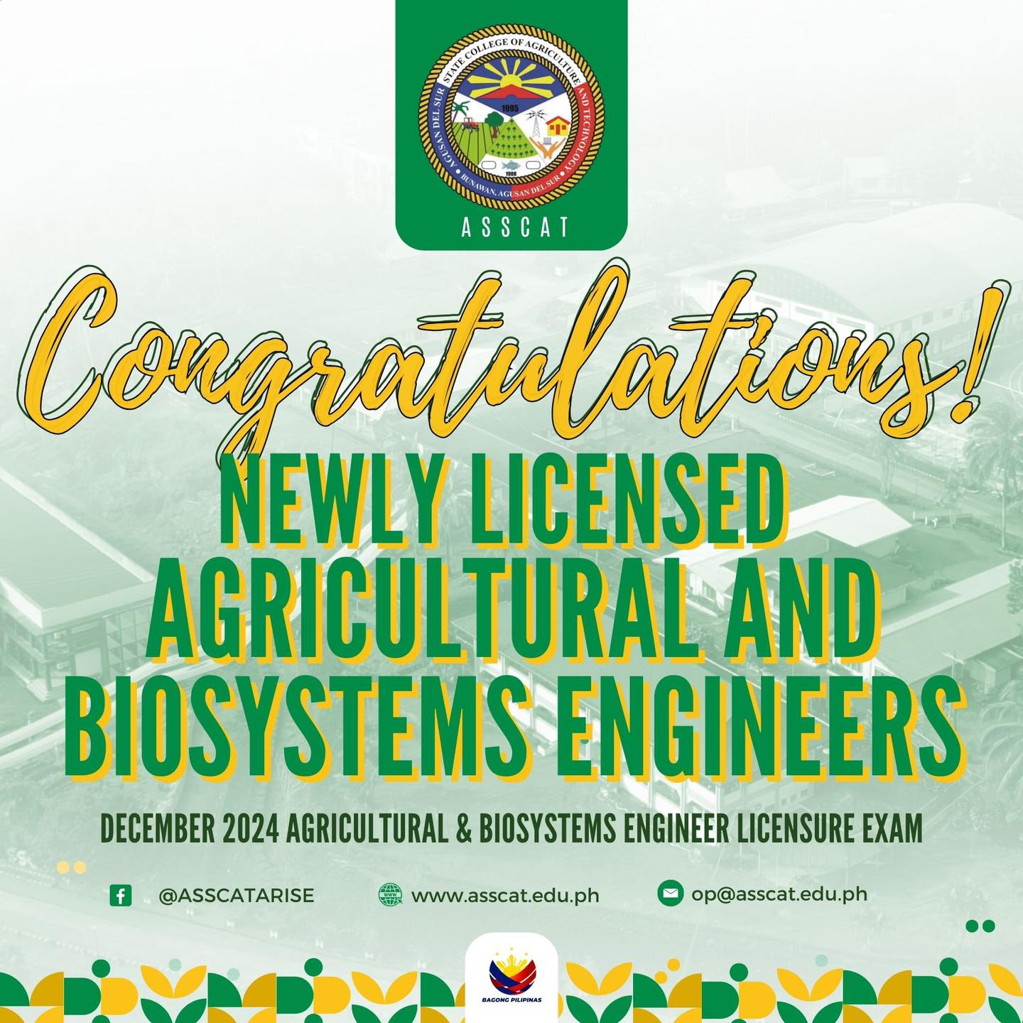 Agusan del Sur State College of Agriculture and Technology (ASSCAT) proudly extends its warmest congratulations to the new licensed Agricultural and Biosystems Engineers! According to the Professional Regulation Commission (PRC), 1,479 out of 2,625 examinees successfully passed the Agricultural …