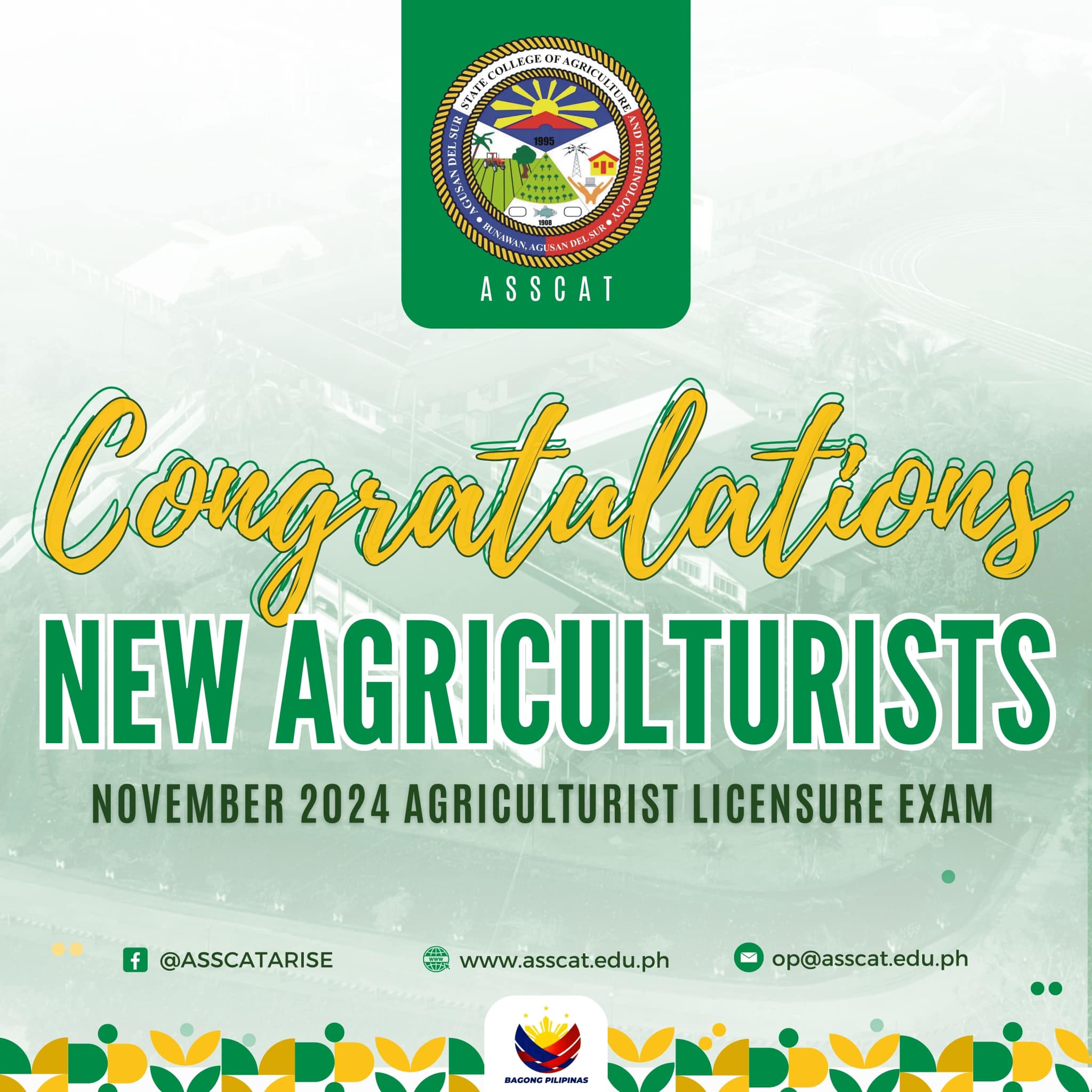 Congratulations to the 20 New Agriculturists from ASSCAT! We celebrate your hard work and dedication in passing the November 2024 Licensure Exam for Agriculturists! The Professional Regulation Commission (PRC) announces that 3,628 out of 7,144 passed the Agriculturists Licensure Examination representing …