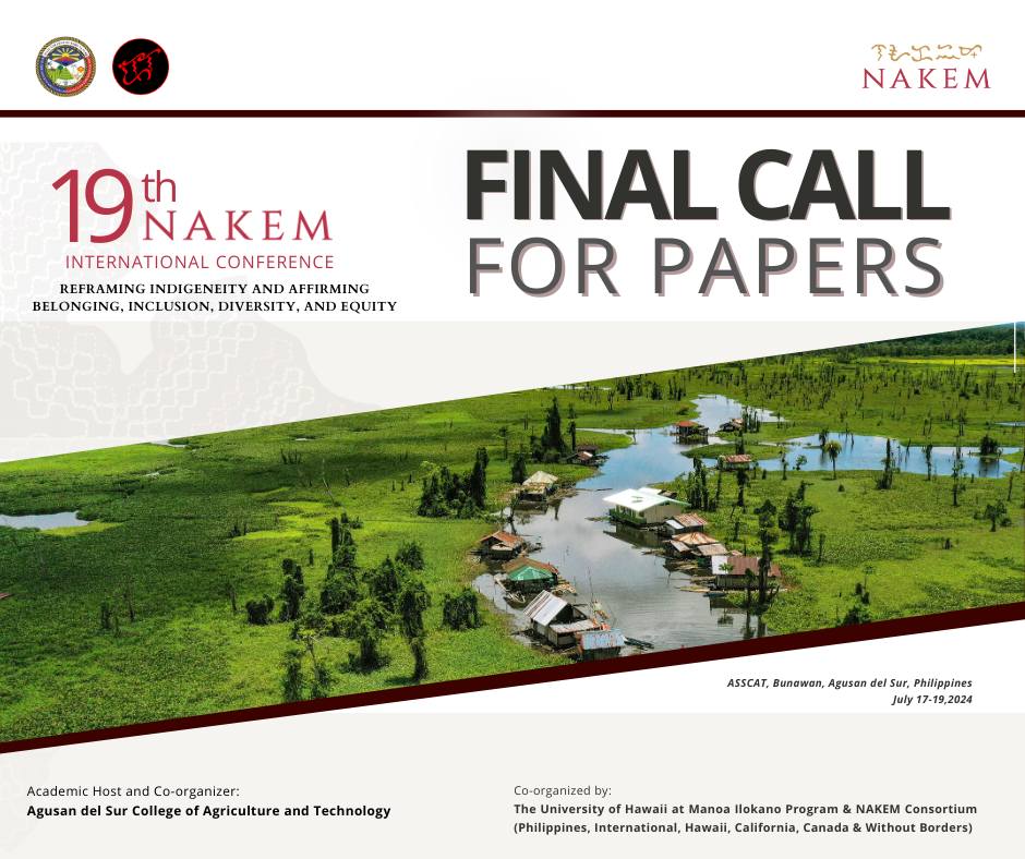 Attention scholars and researchers!   This is your ๐…๐ˆ๐๐€๐‹ chance to submit your papers for the NAKEM 19 conference, taking place at Agusan del Sur State College of Agriculture and Technology (ASSCAT) in Bunawan, Agusan del Sur, Philippines, from July …