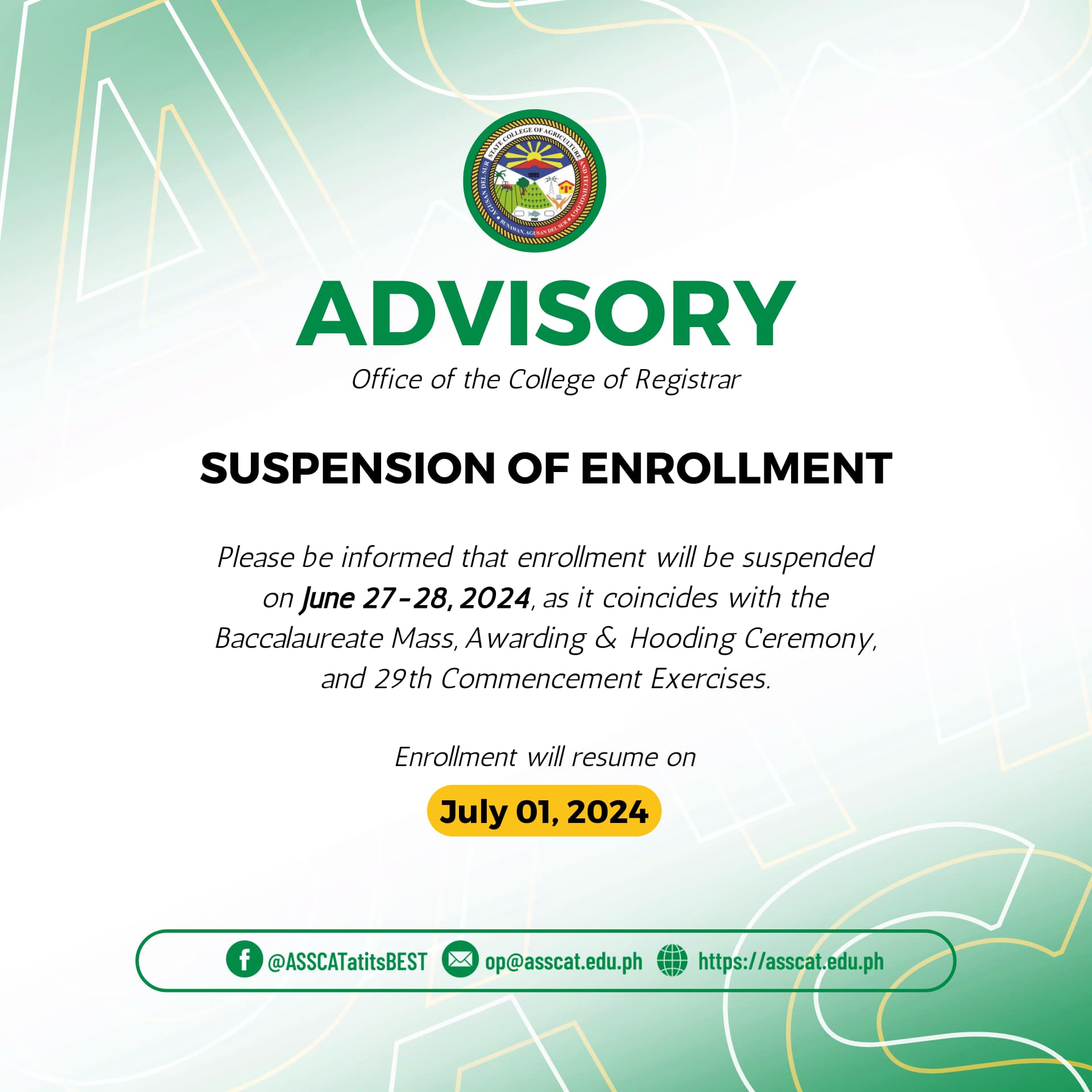 ADVISORY | SUSPENSION OF ENROLLMENT