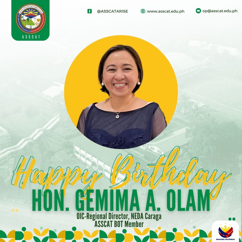 Today, we celebrate the life and leadership of Hon. Gemima A. Olam, the esteemed OIC-Regional Director of the National Economic and Development Authority (NEDA) Caraga and a valued member of the ASSCAT Board of Trustees.